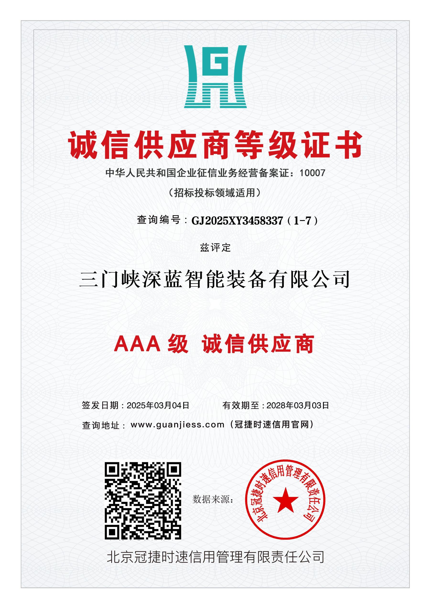 Certificate of Trusted Supplier Grade